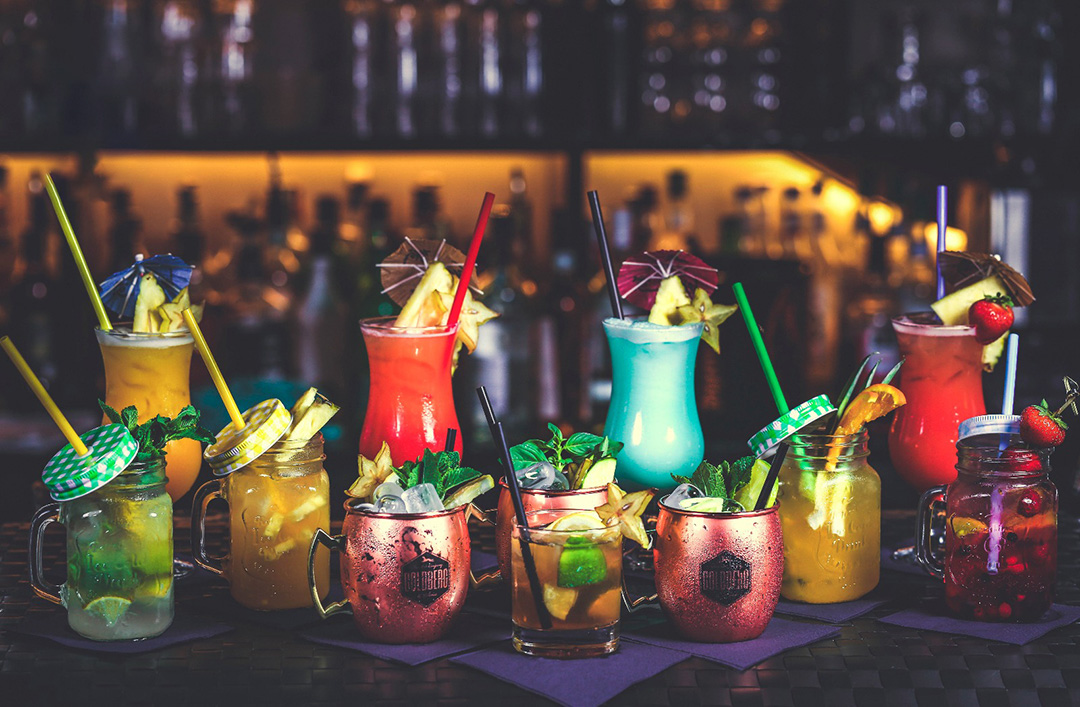 Weißer und brauner Rum, Malibu, Grenadine, O-Saft & Zitrone